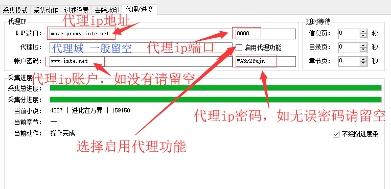 注意:有个别关关采集器版本不支持代理账户密码的选项,这种采集器不支持含有账户密码验证代理ip,一般收费的都有这个验证
