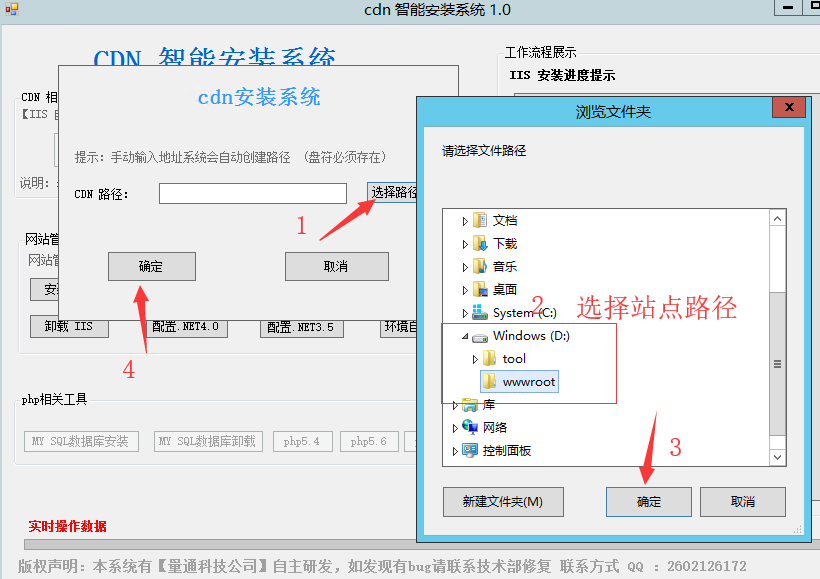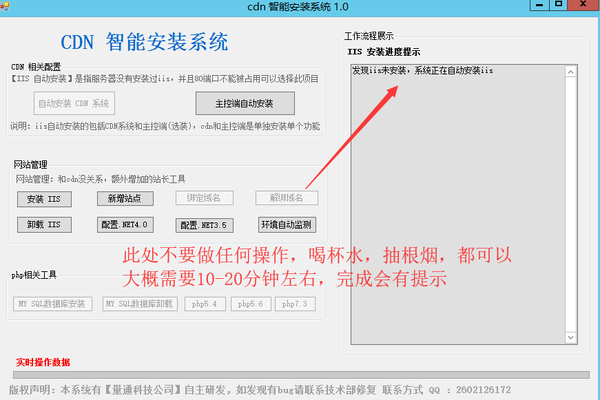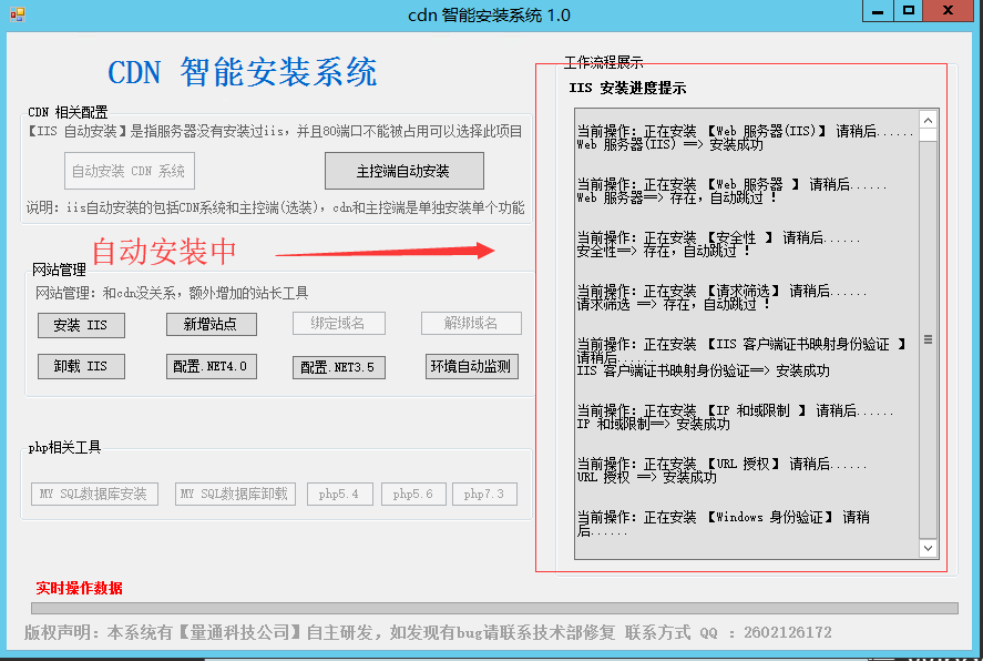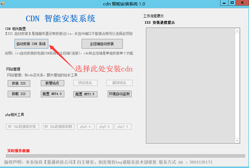 第三步:双击或者右键打开iis_install.exe可执行文件,打开后选择【自动安装cdn系统】,如图所示: