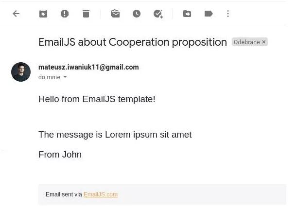 我收到电子邮件,内容正是根据我们的模板和表单数据渲染出来的。