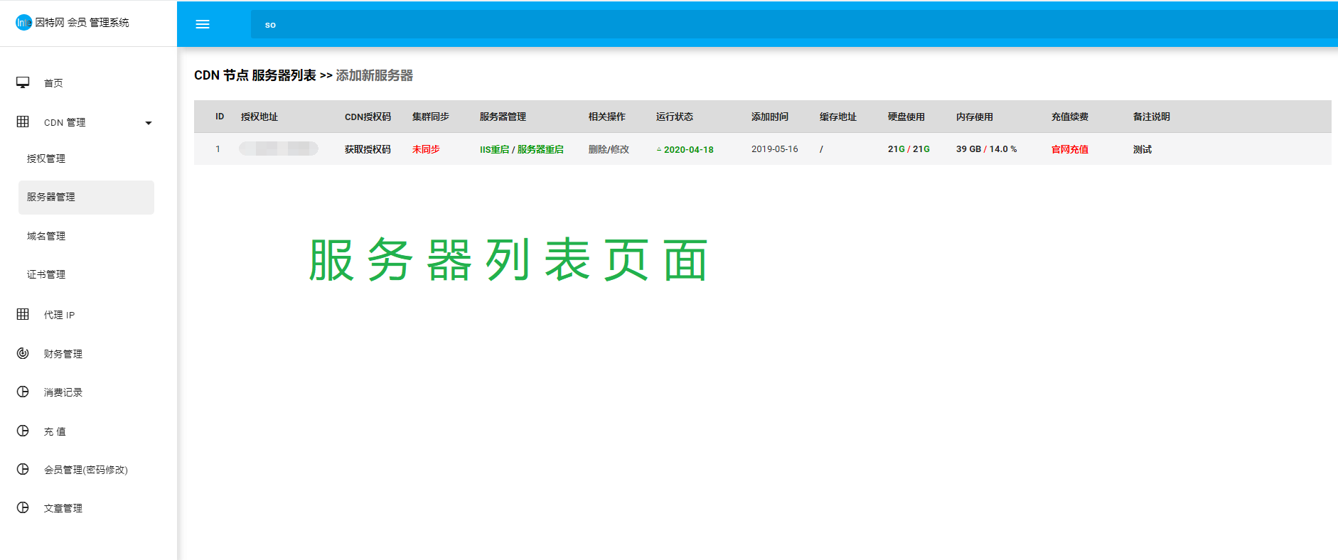 第一:服务器列表管理,可以通过cdn直接控制服务器重启,或者iis重启