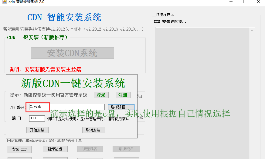 ①:cdn路径就是cdn要安装的地址,可以点击后面的【选择路径...】来选择指定位置,也可以手动输入,