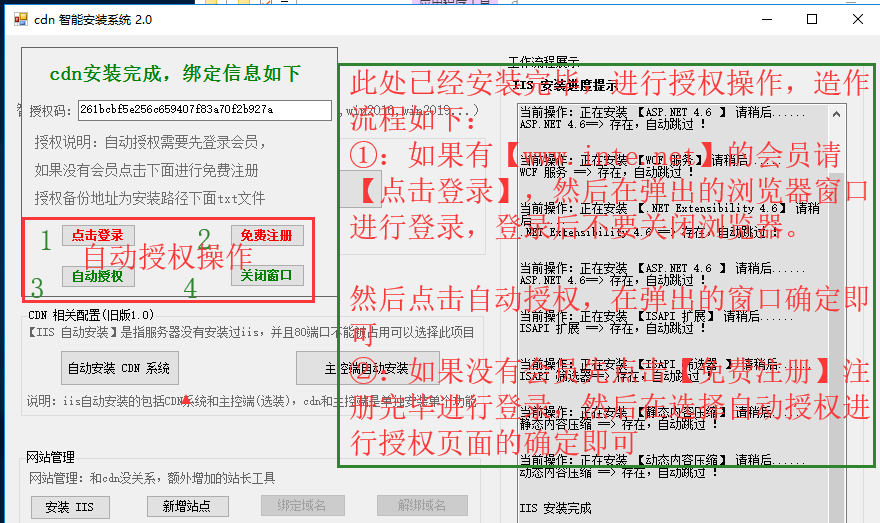②:授权码不能修改,授权码是唯一的,如果修改后授权将会失败,无法增加修改删除站点操作