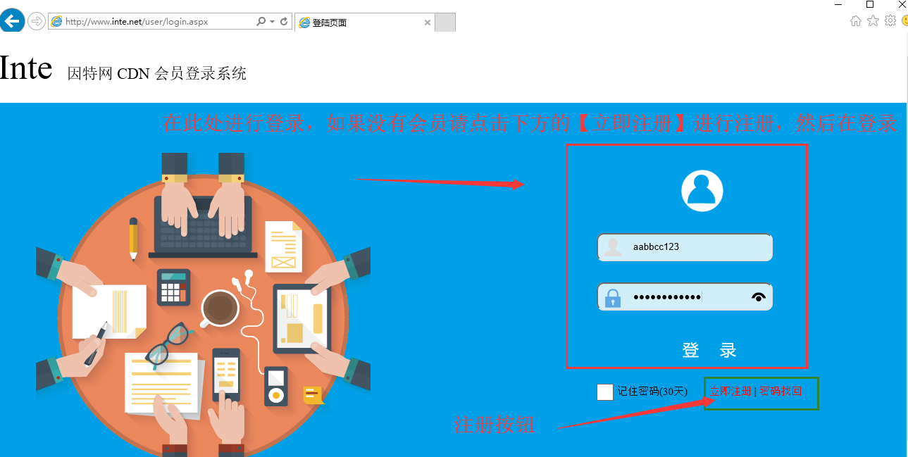 ①:如果有【www.inte.net】会员的可以直接选择【点击登录】进行会员登录,注意登录后不要关闭浏览器。
