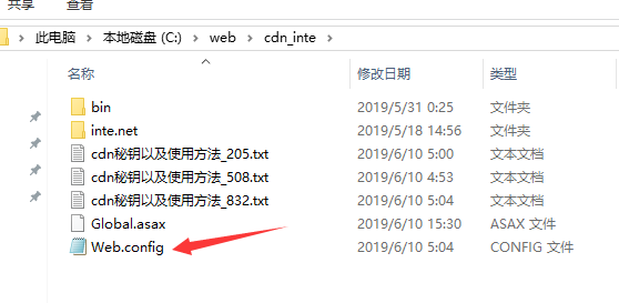 打开cdn的安装目录:图片演示是测试路径,实际根据你开始的选择路径来确定打开的路径,用记事本打开web.config文件