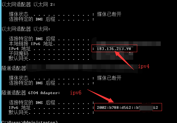 注意:如果你所在地域没有开启ipv6那么ipv6就无法获取
