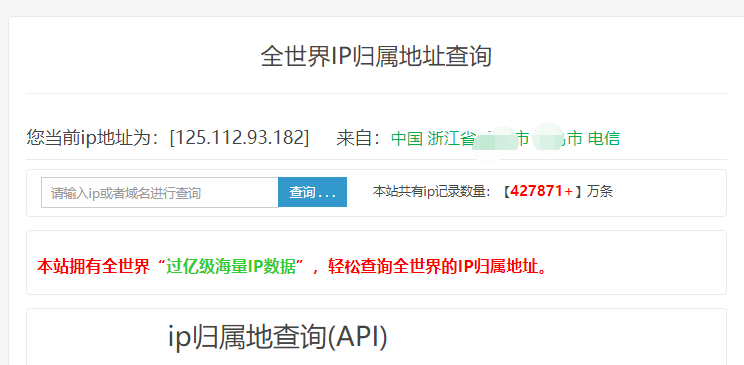 打开上面的网址即可显示你的ip地址,并且还能显示你所在的地域,可以精确到市,甚至某个小区,网吧,或者公司等等,非常详细,可以推荐大家收藏一下,如图所示: