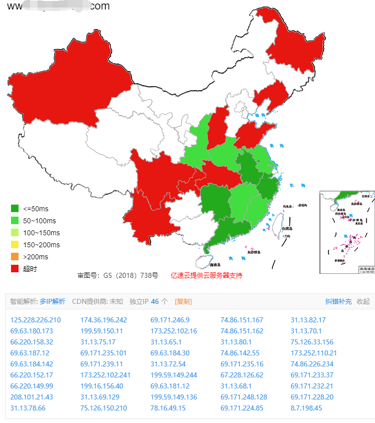 综合上图所示,一个域名出现了46个ip解析,而且均为虚假ip,和实际dns解析的ip是不一致的,这就说明域名已经被污染了。