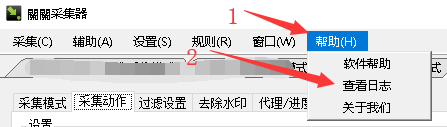如果上述均正常下面查看采集器日志,打开日志方法选择采集器菜单栏最右边的【帮助】-》【查看日志】
