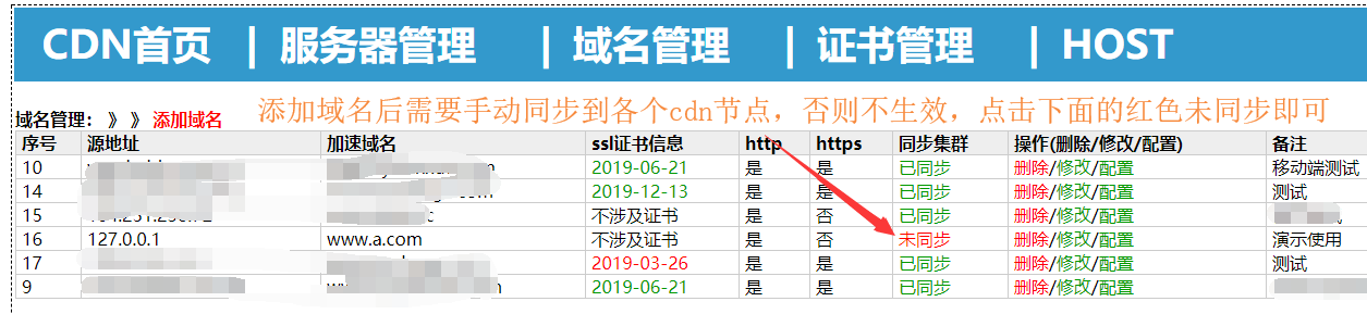 第十:添加完域名后需要同步一下,具体操作如图所示