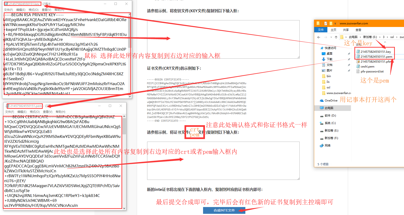 第五:证书转换(crt + key 格式和 pem + key 格式),两种转换方法一样,就是crt格式的选择crt转换inte,pem格式的选择pem转inte ,此处以阿里云提供的pem格式为例,如图所示