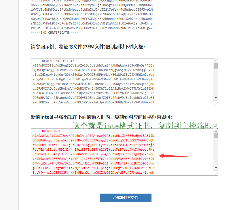 第七:获取转换后inte格式的证书,红色区域就是inte格式证书